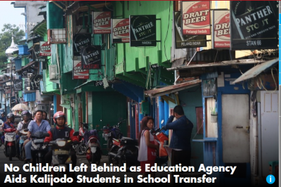 ジャカルタの教育機関の活動北ジャカルタの危険地域Kalijodoの住民に対する立ち退き強制執行の期限まで一週間を切った時期、Kalijodoの学童たちが他の地区に転校しても余分な費用がかからないことを、保障するために北ジャカルタの教育機関は動いている。 2月24日…