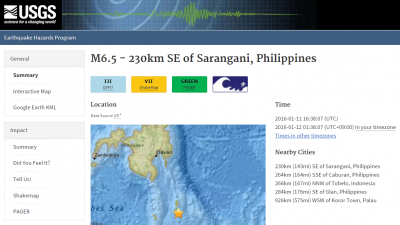 北スラウェシ州タラウド諸島沖で、マグニチュード6.5の地震発生